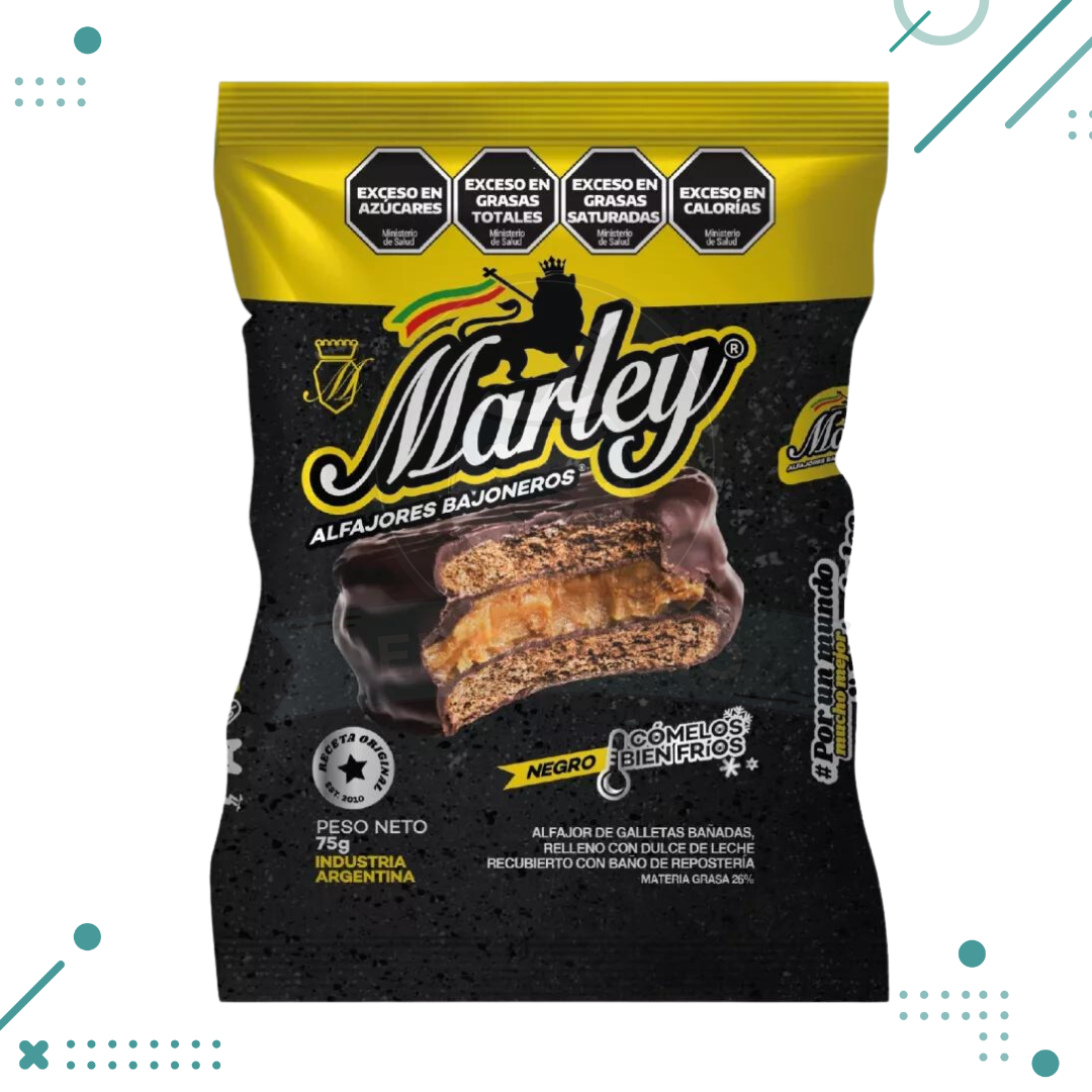 Marley Alfajores Bajoneros Negros, Relleno con Dulce de Leche, Recubierto Con Baño De Reposteria (75gr) (Pack de 10u) (750gr)