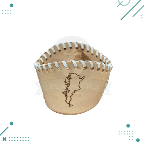 Mate Calabaza Con Base Cuero Vaqueta (Mapa Argentina) (10x10cm aprox.)