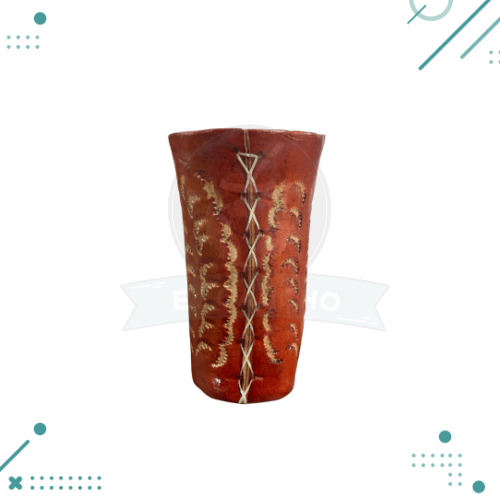 Mate forrado en cuero con interior de aluminio, ideal para disfrutar tereré bien frío gracias a su excelente capacidad de conservar la temperatura. Cada pieza está elaborada de forma artesanal, con un diseño grabado que puede variar ligeramente según el trabajo del artesano, lo que convierte a cada mate en un artículo único.