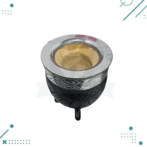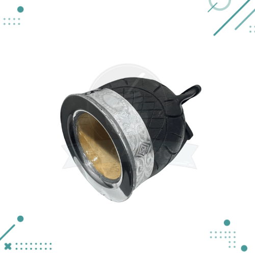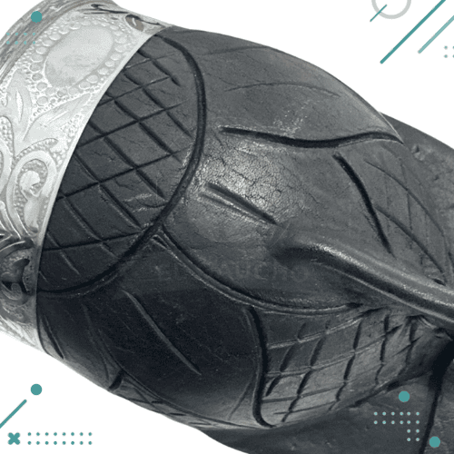 Mate Imperial Cuero Tallado Color Negro Virola Acero (10x12cm aprox.)