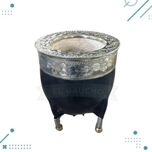 Mate Imperial Exclusivo Botitas Con Virola CINCELADA de Alpaca, Color NEGRO