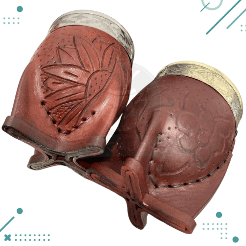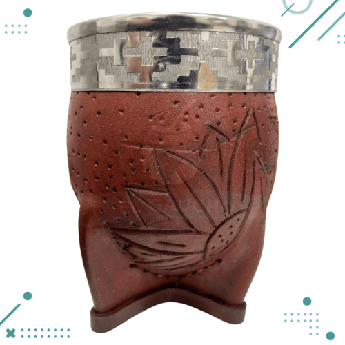 Mate Imperial Marron Cuero Repujado Virola De Alpaca + BOMBILLA de regalo