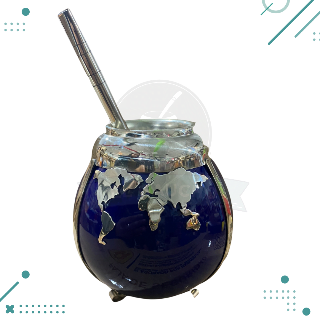 Mate MAPA MUNDI 100% Artesanal + Bombilla de Acero Inoxidable