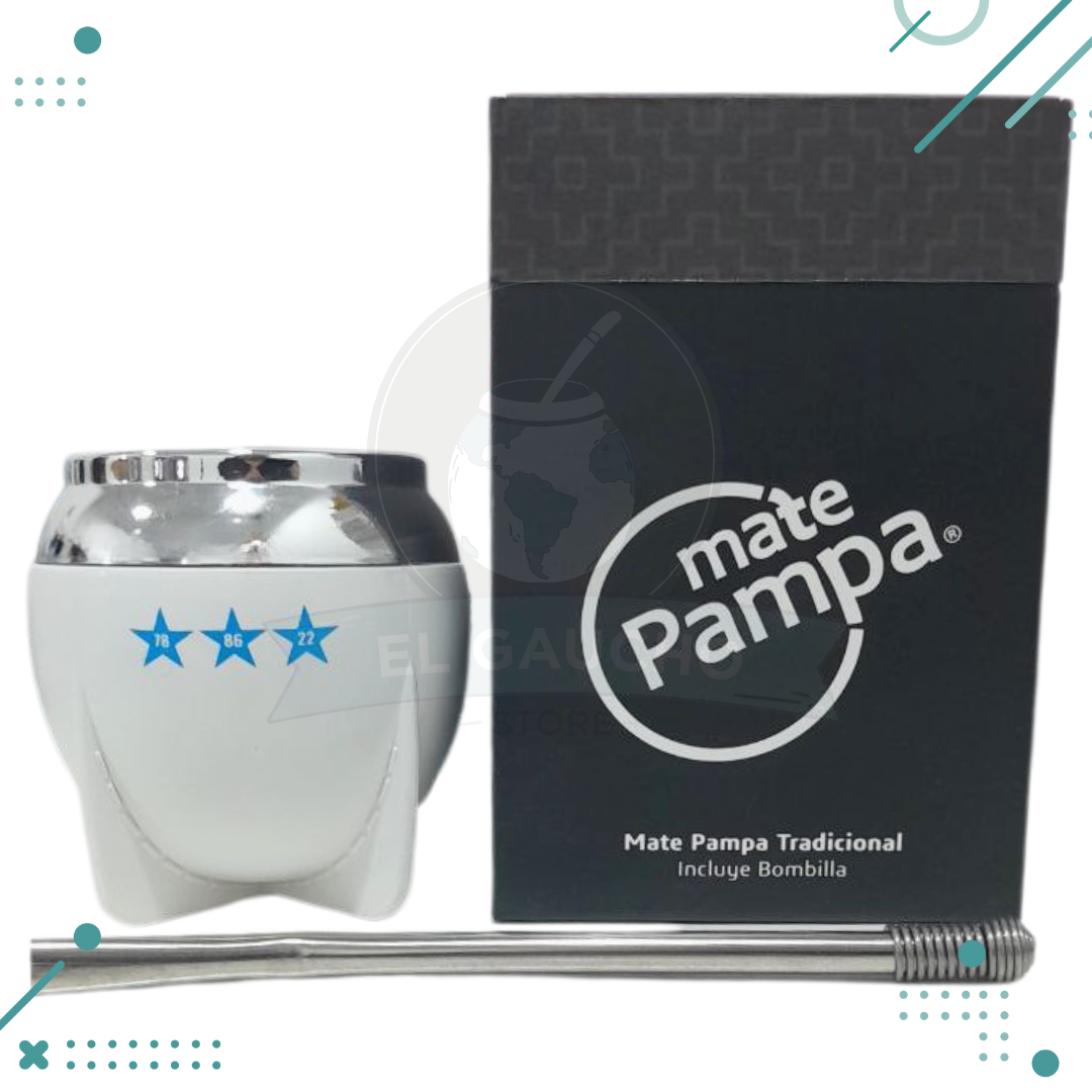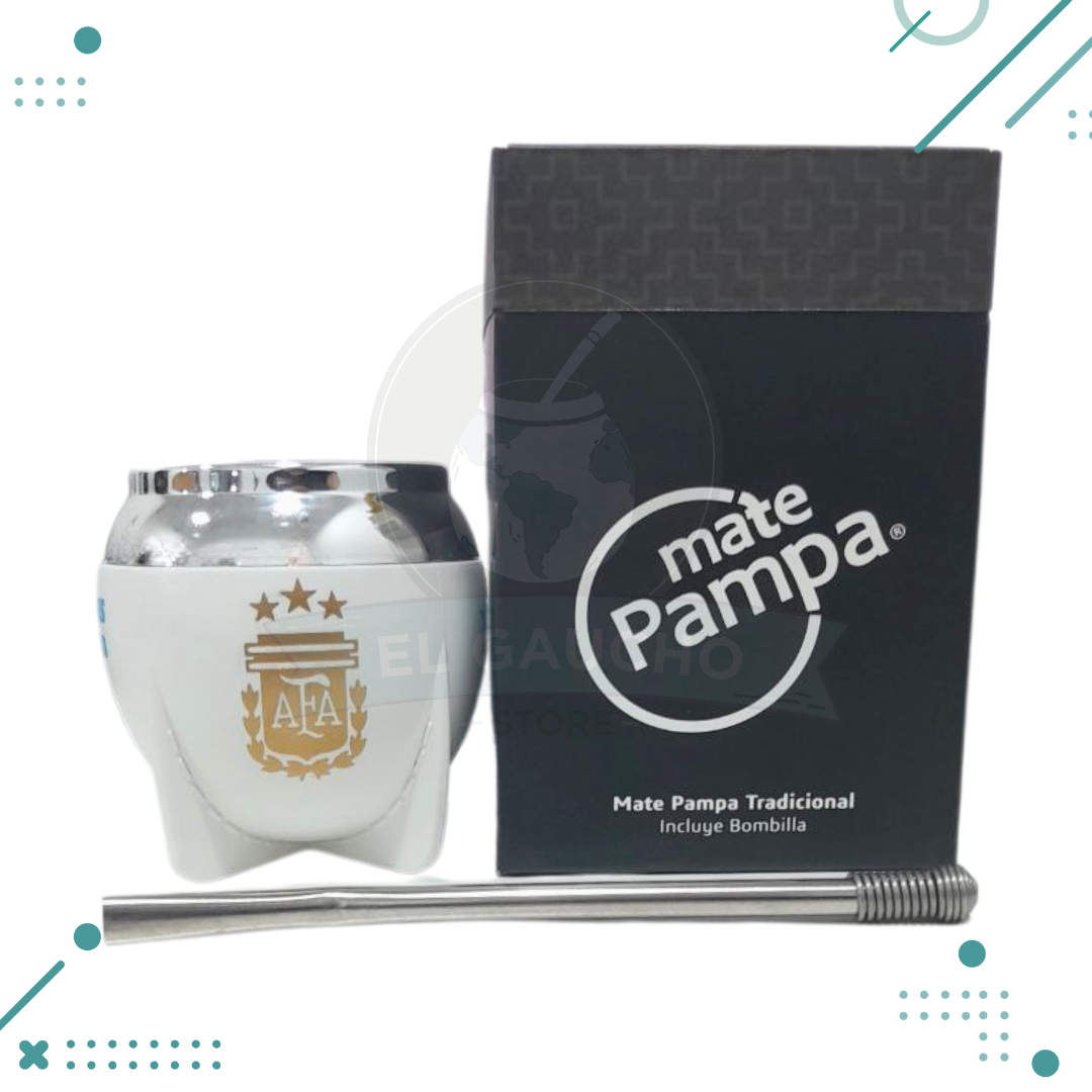 Mate Pampa Copa/bocón + bombilla AFA color blanco