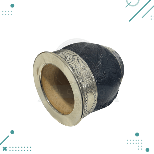 El brocal y la base de alpaca presentan grabados delicados que realzan la estética del mate, mientras que el tallado del cuero aporta textura y personalidad única a cada pieza.