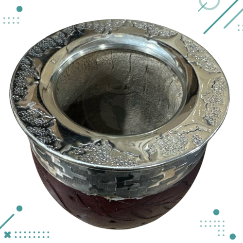 Mate Roma Cincelado Alpaca Cuero Tallado Calabaza (Color MARRON)