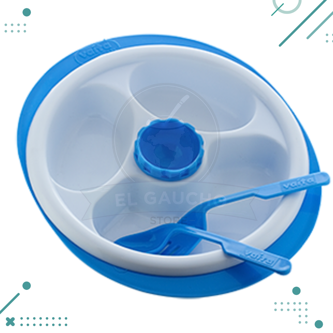 Contiene 3 compartimientos para la diferenciación de sabores. Su función térmica, posibilita que la comida se mantenga caliente por mas tiempo.