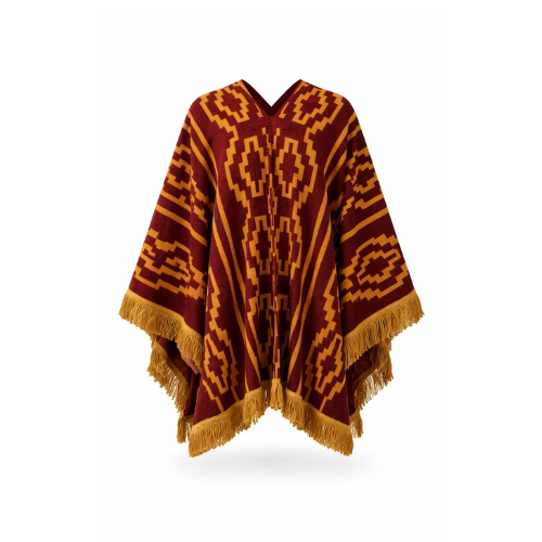 Poncho argentino de calidad PREMIUM, confeccionado en hilo de excelente terminación, ideal para quienes buscan una prenda elegante, abrigada y con fuerte identidad cultural. Su color bordó profundo, combinado con diseños tradicionales en tono beige, resalta el estilo clásico del poncho criollo, aportando distinción y carácter.