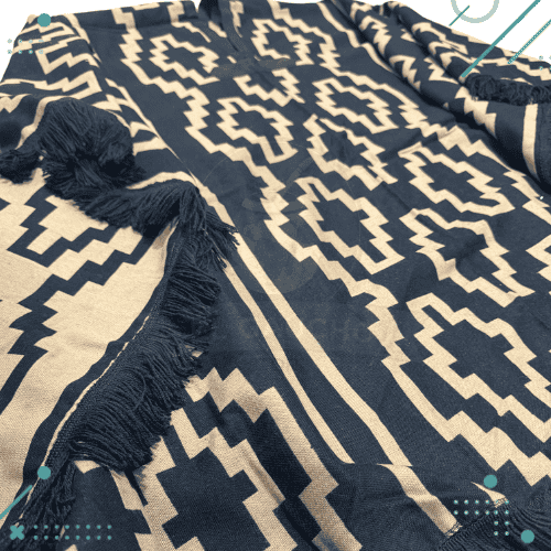 Poncho Argentino Calidad PREMIUM con Hilo – Negro con Diseño Tradicional Beige