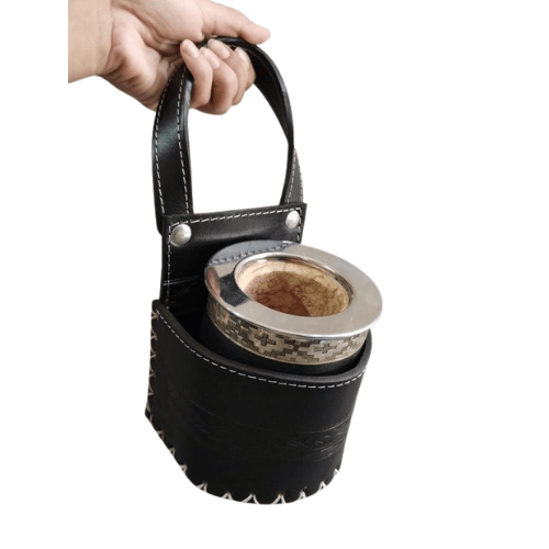 Práctico, resistente y con estilo tradicional. Este porta mate de cuero negro es el complemento ideal para transportar y proteger tu mate en el día a día.