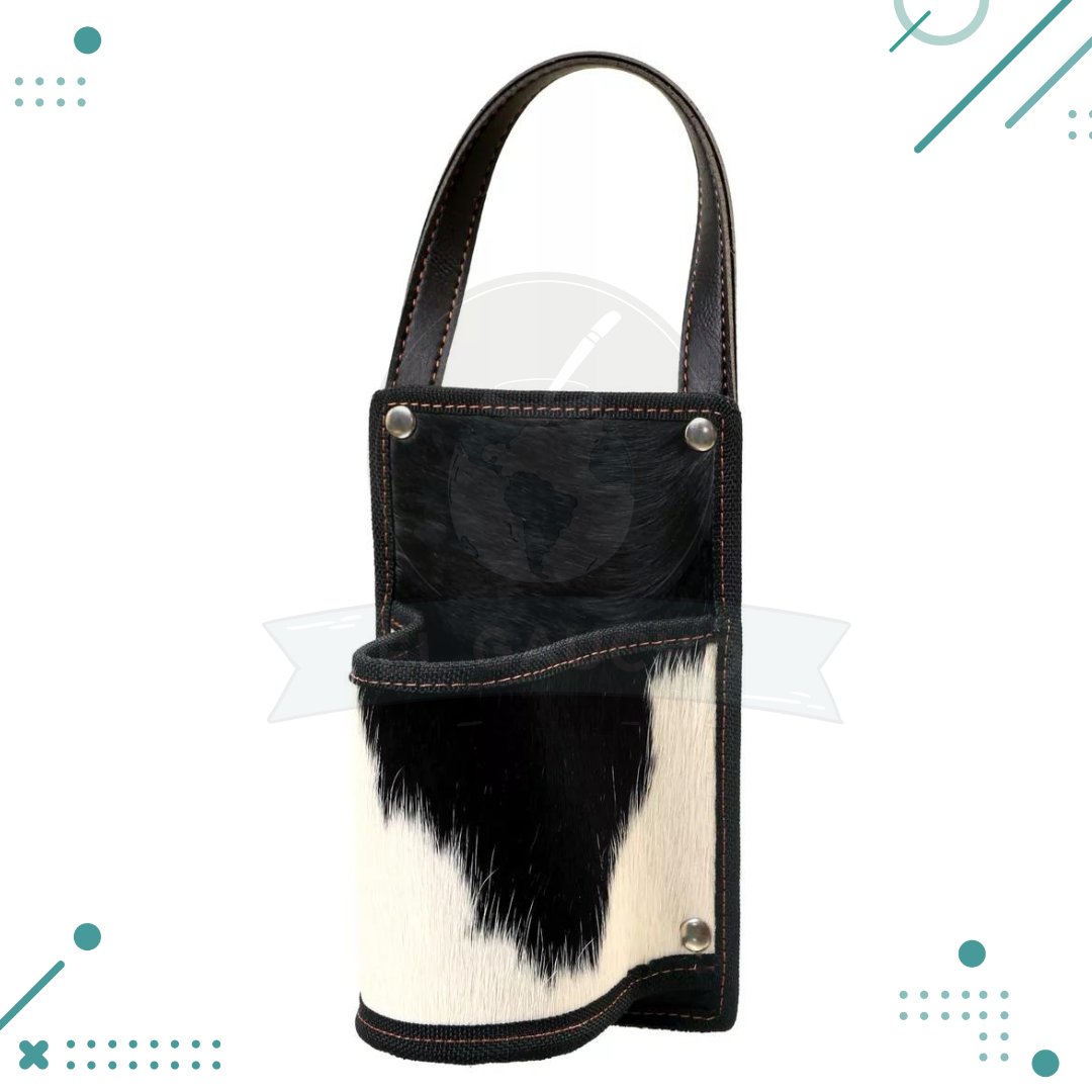 Porta Mate Para Auto De Cuero Con Pelo De Vaca NEGRO