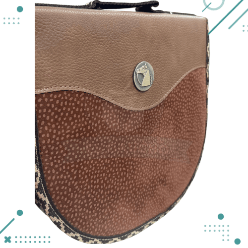 Porta Set Asado Cuero Carpincho Color Marron (Plato de Madera, Tenedor, Cuchillo)