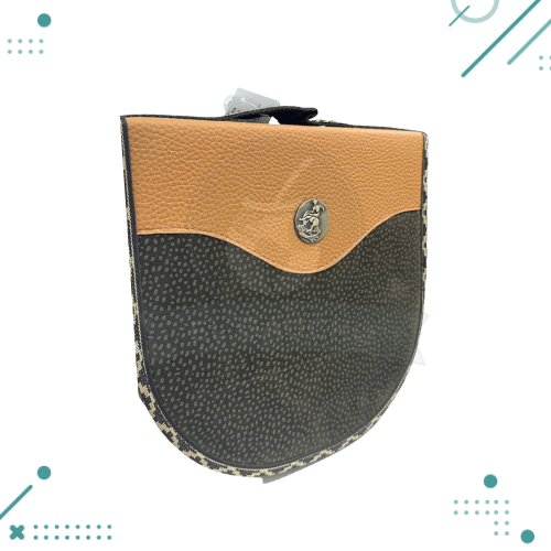 Porta Set Asado Cuero Carpincho Color Suela (Plato de Madera, Tenedor, Cuchillo)