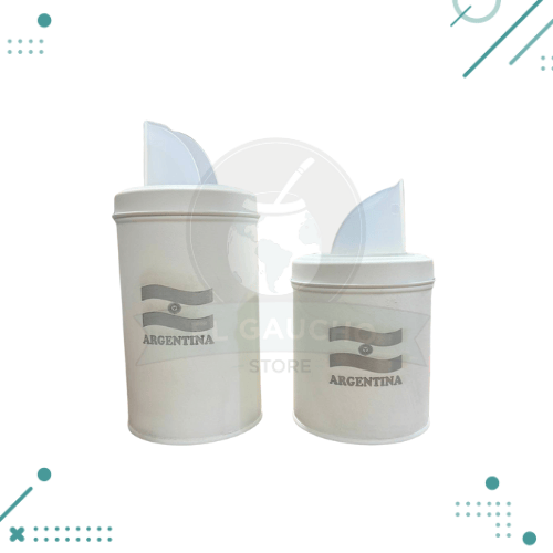 Elegí la tradición con estilo. Este set incluye un mate de madera grabado con la bandera argentina y dos latas metálicas blancas para yerba y azúcar. Ideal para conservar tus infusiones y disfrutar del ritual del mate con un diseño moderno y auténtico.