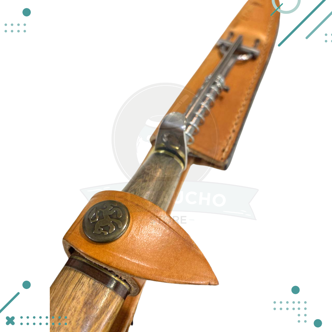 CUCHILLO + TENEDOR CON EXPULSADOR EN CON VAINA DE CUERO VACUNO 100%