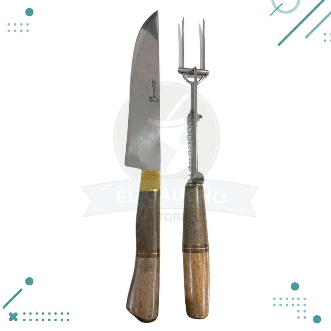 Set De Asado Artesanal, Cuchillo, Tenedor con Expulsador