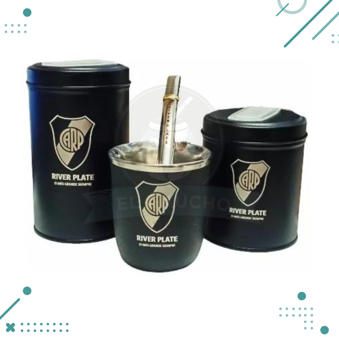 Set Matero Acero Yerbara+Azucarera+Mate+Bombilla Grabado – River