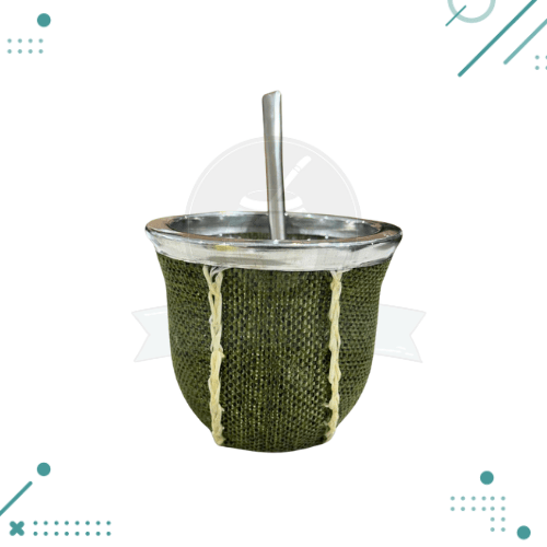 • 🧉 Mate forrado en arpillera con interior de aluminio y bombilla metálica incluida.