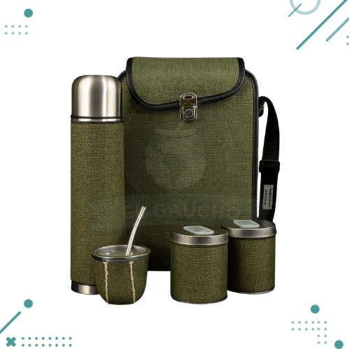 Disfrutá del mate donde quieras con este elegante set matero completo, diseñado para los amantes de la tradición y el estilo. Su terminación en arpillera color verde le da un toque rústico y moderno a la vez, ideal para acompañarte en la oficina, el auto o al aire libre.
