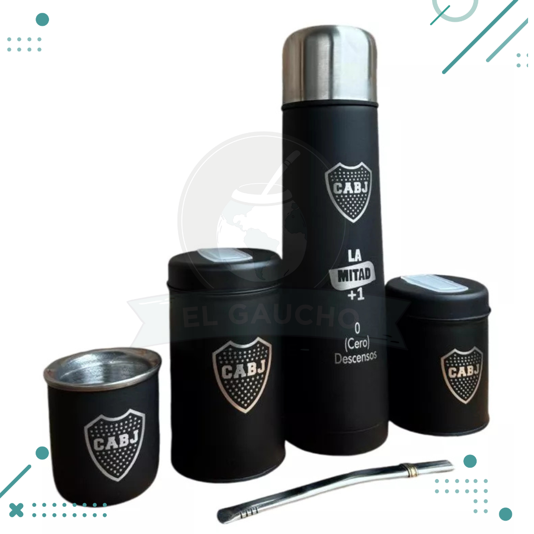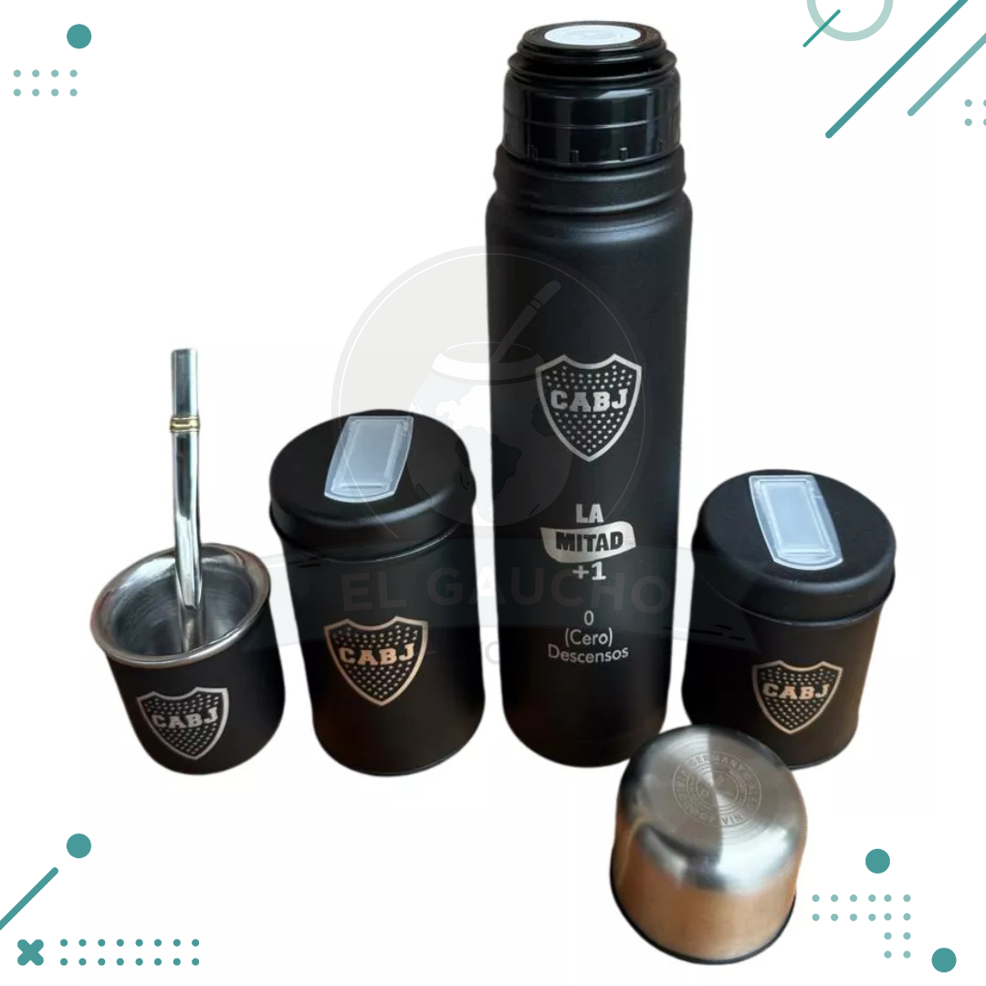Set Matero Completo Grabado – Termo Acero, Yerb. Azuc. Mate y Bombilla (BOCA JUNIORS) (500ml)