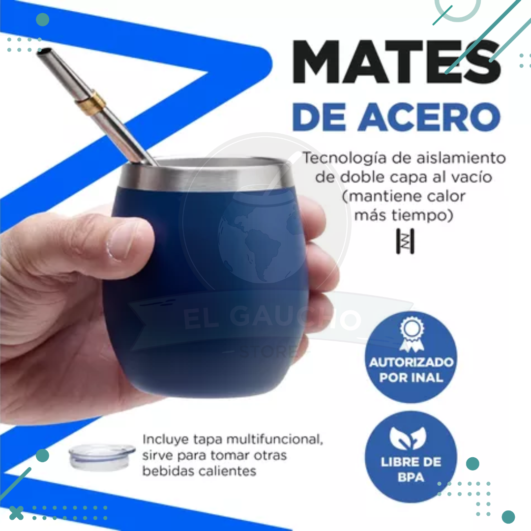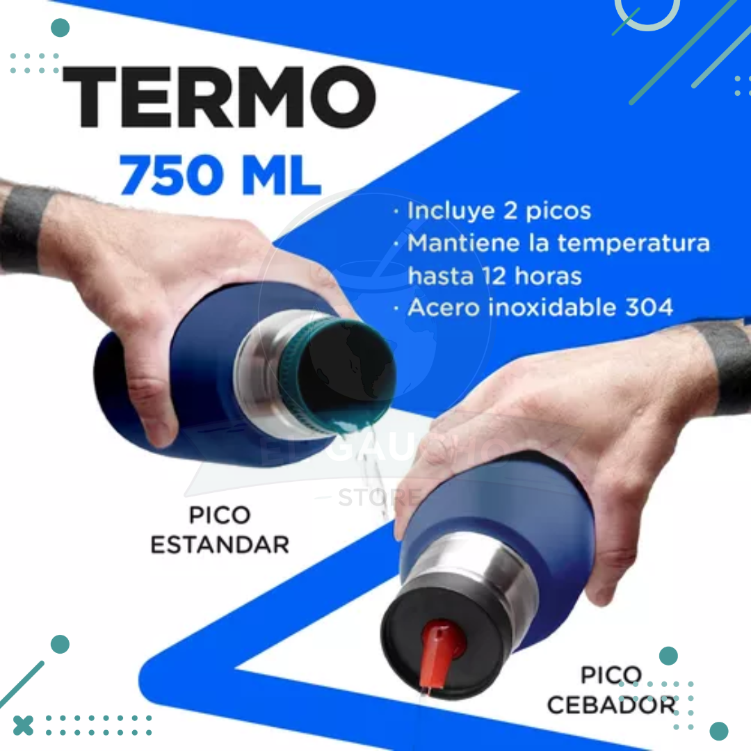 Set Matero – Termo Acero 750ml + Mate + Bombilla Inal Azul