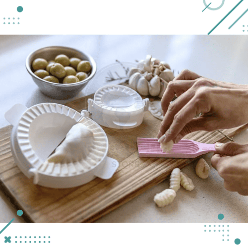 El Set Incluye 1 molde para empanada grande, 1 molde para empanada copetín + 1 tablita para ñoquis de regalo.