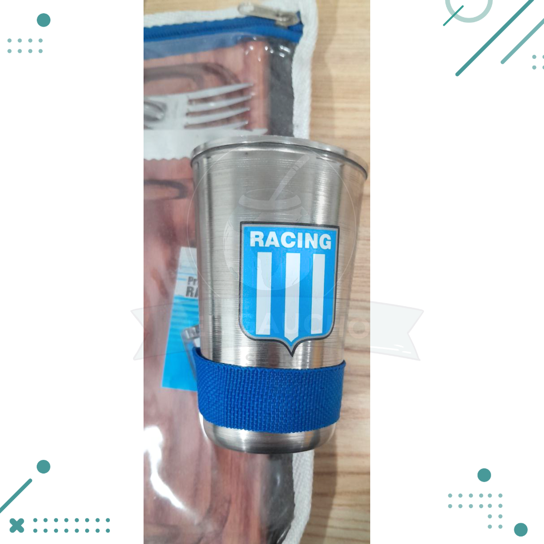Set plato madera, tenedor, cuchillo, vaso y estuche RACING