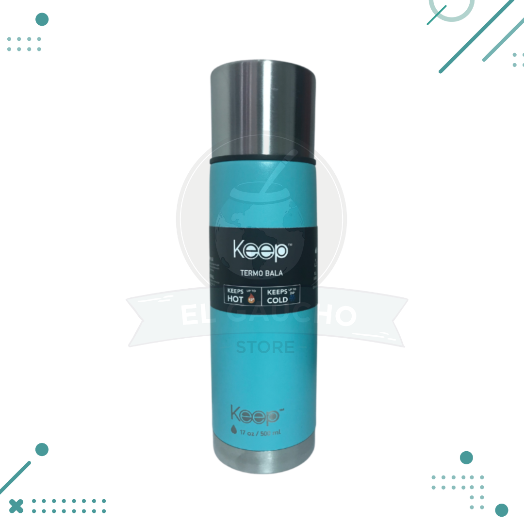 • Keep Termo Bala Celeste 1 Lt Termo bala color negro fabricado con acero inoxidable, con doble pared y tapa rosca. Mantiene líquidos fríos y calientes en optima temperatura. Tiene una capacidad de 1 Lt.