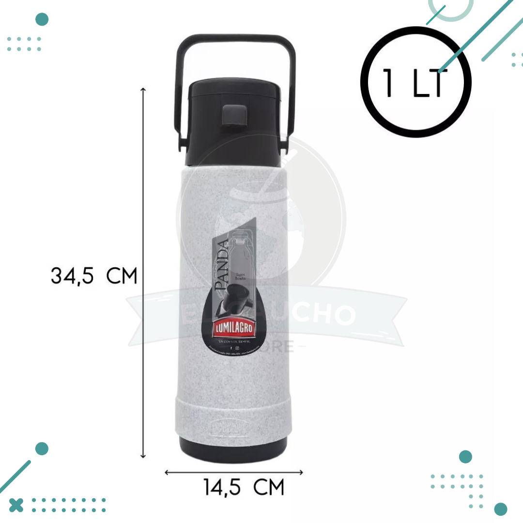Termo Lumilagro Tapon Bomba De Vidrio 1l – Gris Mármol