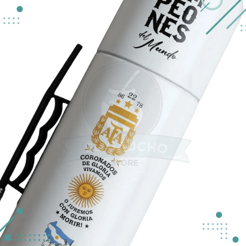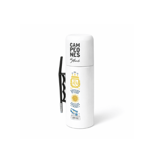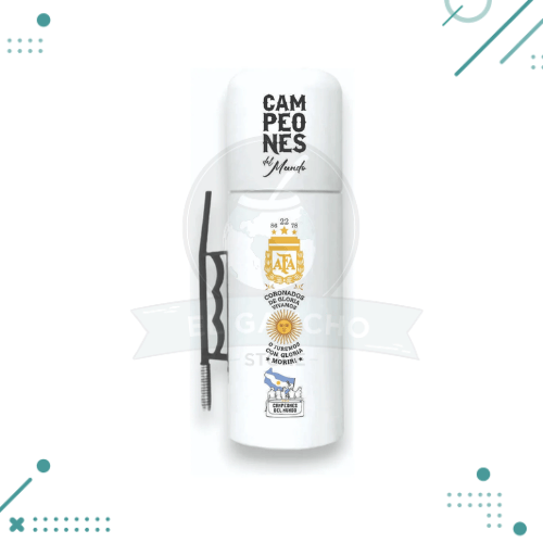 Termo Mate Autocebante + Bombilla «Campeones Del Mundo» (25x9cm)