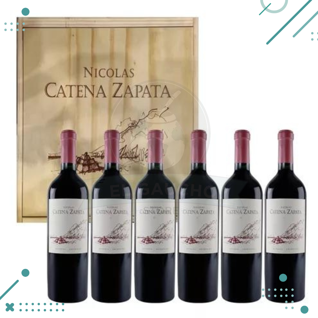 Vino NICOLAS Catena Zapata x 6 Unidades + CAJA MADERA Regalo, AÑO 2021