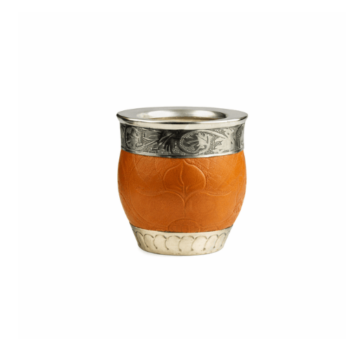Mate Roma Calabaza , Alpaca Cuero Tallado (Color SUELA)