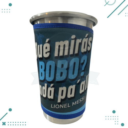 Vaso Fernet Aluminio MESSI ¿Que miras bobo? Anda pa´allá/con funda de neoprene 1 litro