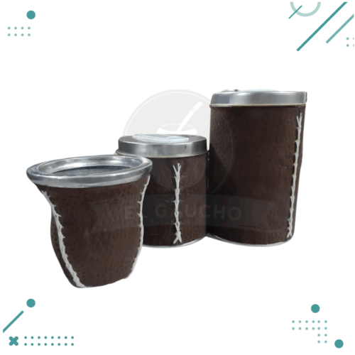 Set Yerbera + Azucarera + Mate Simil Carpincho Color MARRON OSCURO