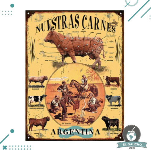 Cartel De Chapa NUESTRAS CARNES 20X28 CM
