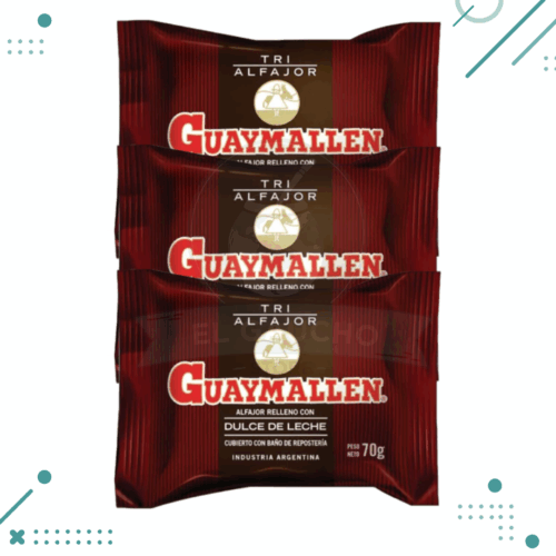 Alfajor Guaymallen TRIPLE negro, relleno con Dulce de Leche, con baño de Repostería de Chocolate (70gr)(Pack de 3u.)(210gr)