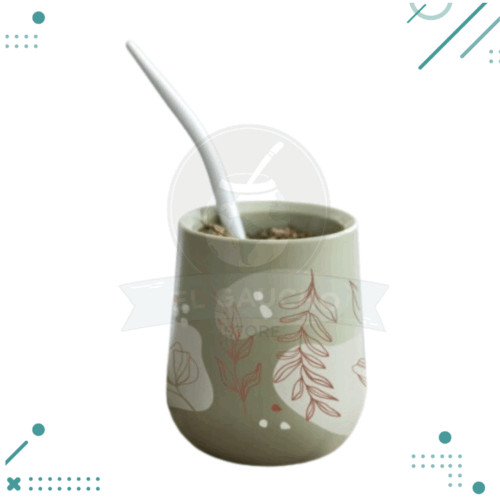 Mate Criollo Ceramica con Bombilla en Caja de Regalo, Color Verde