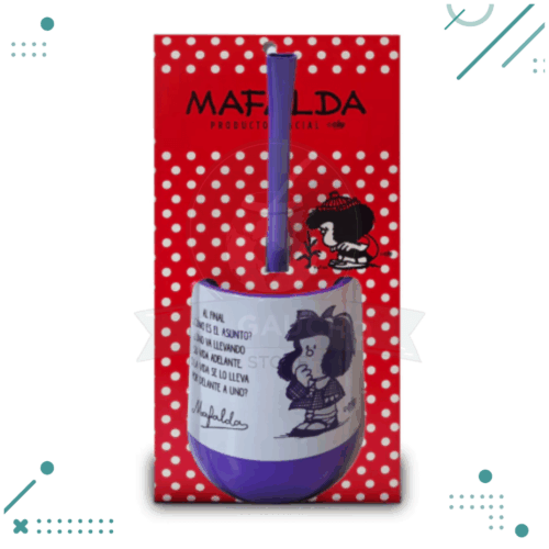 Mate Mafalda Pensativa Autolimpiante BLANCO y VIOLETA + Bombilla