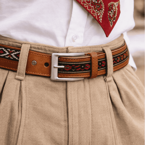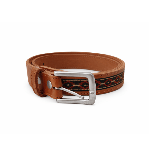 Cinturon Cuero Genuino 100% Artesanal, Cuero Color Suela, Guarda Negra y Roja , Modelo 11