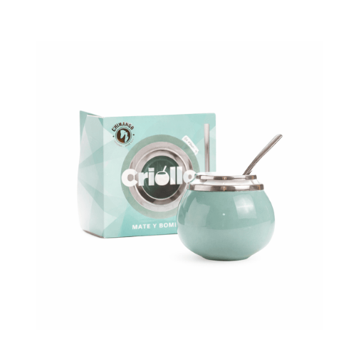 Mate Criollo Ceramica con Bombilla en Caja de Regalo, Color Verde