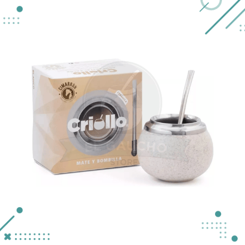 MATE CRIOLLO CON BOMBILLA DE ACERO EN CAJA DE REGALO Colores :aqcua, marfil, rosa pastel y negro Medidas: Altura 8