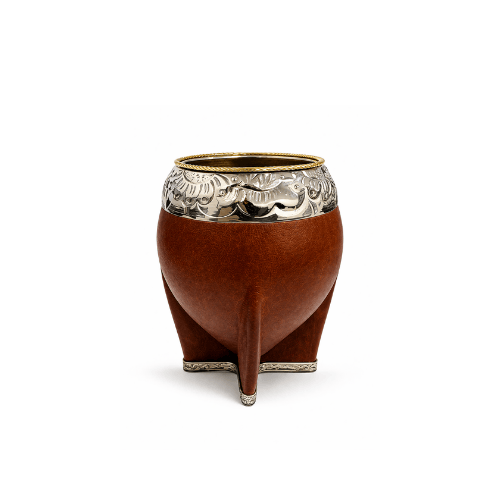 Porta Mate Para Auto De Cuero Con Pelo De Vaca NEGRO